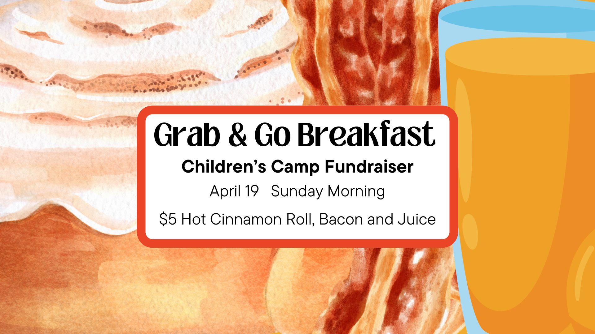 Grab & Go Breakfast is a Children’s Camp Fundraiser. Enjoy a Hot Cinnamon Roll, Bacon and Juice for $5. Pre-order for yourself or your whole class!